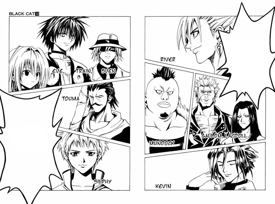 Train and Eve encounter a sweeper named River Zastory and an informat named Glin, who knows of Creed's location. River, Upon learning that Train is the notorious Black Cat, challenges him to a battle. Train agrees and with his rail gun, manages to win, much to River's frustration. Glin tells the three sweepers that he is planning on creating a sweeper alliance to defeat Creed and gives them CDs of a game that he personally created. He tells them that if they pass all levels, they will get the information regarding the meeting.